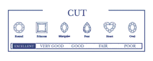 The cut of a diamond is perhaps the most important in the 4Cs. It reflects how the diamond’s facets interact with light. This is determined by the various proportions, polish and overall symmetry of the diamond.