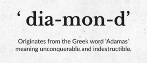 - The word diamond comes from the Greek word, adamas, meaning something that is unbreakable or invincible. Similarly, the English word ‘adamant’ stems from the same word.