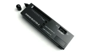 On this weighing machine, they put a stone which is similar in size and shape to that of the original diamond to compare the heaviness.