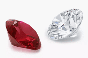 - Colour: Rubies are vivid red due to chromium concentration, while diamonds vary in colour, with colourless being rare and valuable.