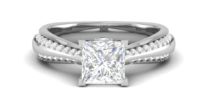 Undoubtedly, the best setting for princess cut diamonds is the classic channel or four-prongs setting such as solitaire. As princess-cut diamonds have pointy edges, it’s essential to support the corners so that it doesn’t get chipped.